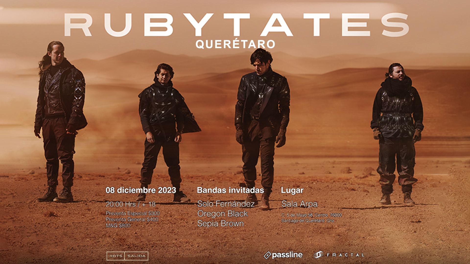 Rubytates regresara a la ciudad de Querétaro el próximo viernes 8 de diciembre en Sala Arpa 8:00 pm con lo mejor de su repertorio. Te dejamos el precios así como del link para que compres tus boletos: