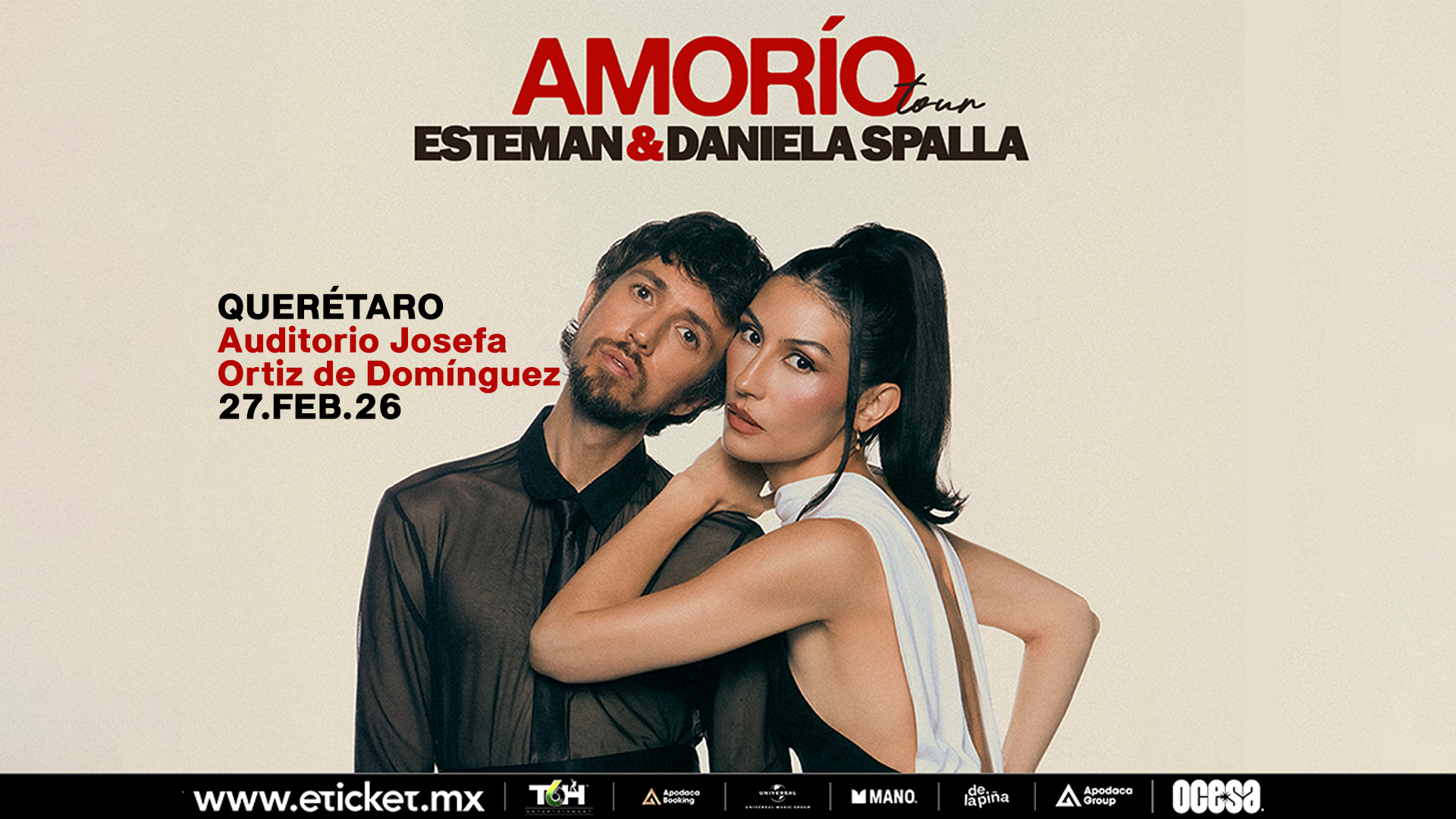 El “amorío” de Esteman y Daniela Spalla llegara la ciudad de Querétaro el próximo viernes 27 de febrero 2026 en el Auditorio Josefa Ortiz de Domínguez y no te lo puedes perder.