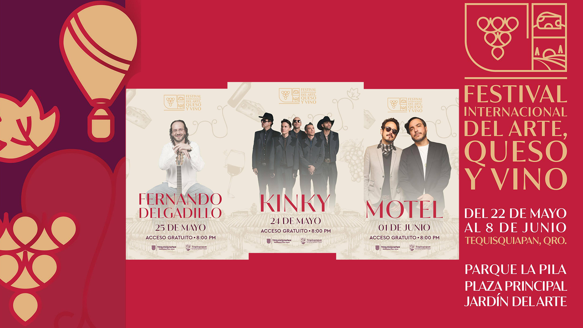 Tequisquiapan presenta el Festival Internacional del Arte, queso y Vino 2025 del 22 de mayo al 8 de junio, un evento familiar y gratuito donde se realizara en diferentes lugares de Tequis como Parque La Pila, la Plaza Miguel Hidalgo y el Jardín del Arte, escenarios perfectos para recorrer galerías al aire libre, disfrutar de espectáculos.