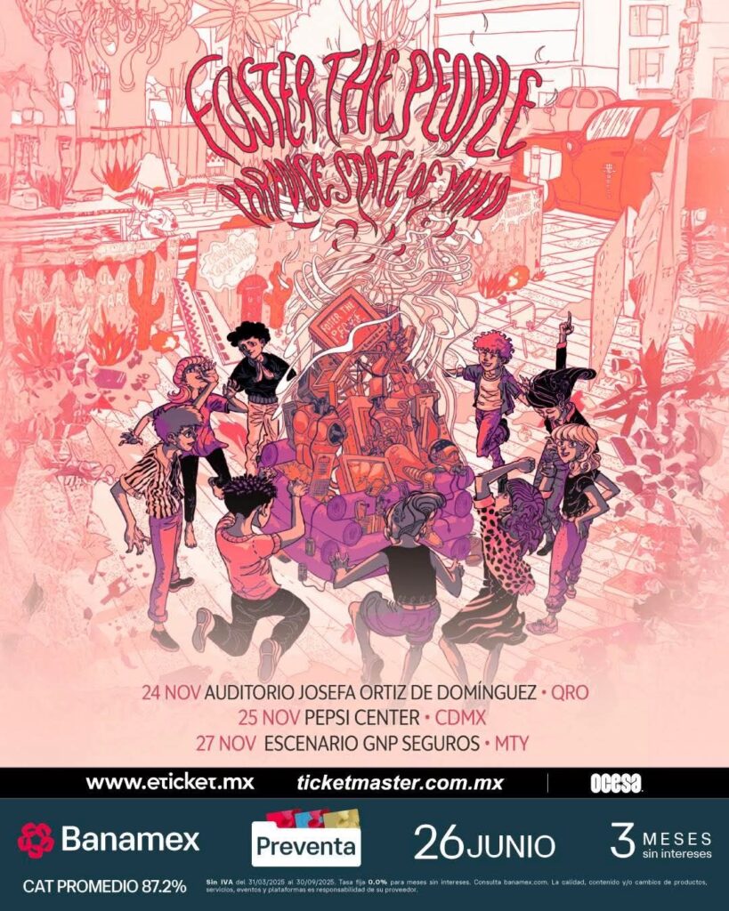 Foster The People anuncio gira por México y llegara a Querétaro como parte de su Paradise State Of Mind tour 2025.